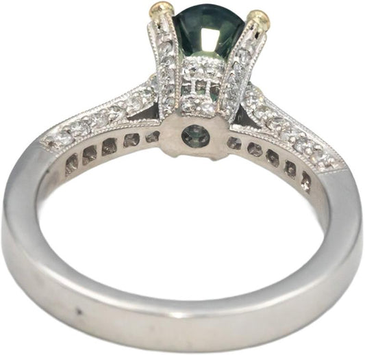 14k White Gold 1.78CT Round Cut Diamond and Oval Cut Sapphire Ring Size 6