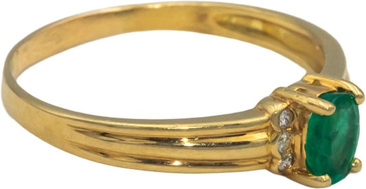 18k Yellow Gold 0.36CT Diamond and Emerald Ring Size 10
