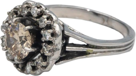 Vintage 14k White Gold 1.20CT Diamond Halo Ring w/ 1.0CT Center Size 6