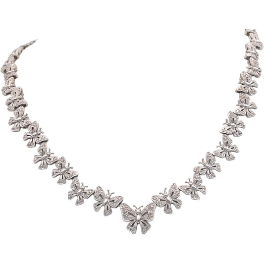 Diamond Round Cut 18k White Gold Graduated Width Butterfly Link Necklace 0.60CT