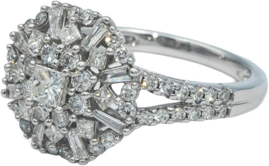 10k White Gold 1.0CT Princess and Round Cut Diamond Cluster Ring Size 7.25