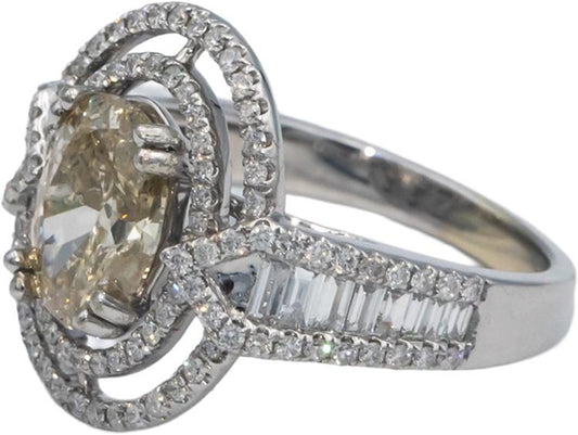 14k White Gold 2.47CT Diamond Cocktail Ring w/ 1.72CT Oval Cut Center Size 6.5