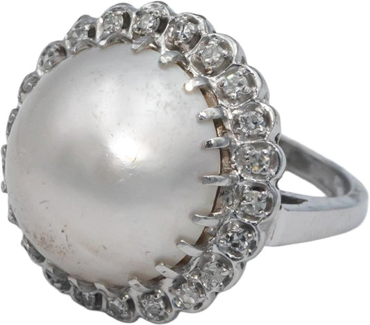 Vintage Antique 14k White Gold 0.30CT Diamond and 16.7mm Mabe Pearl Ring Size 7