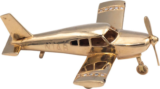 Custom Rare 14k Yellow Gold Diamond and Ruby Airplane Charm 0.25CT