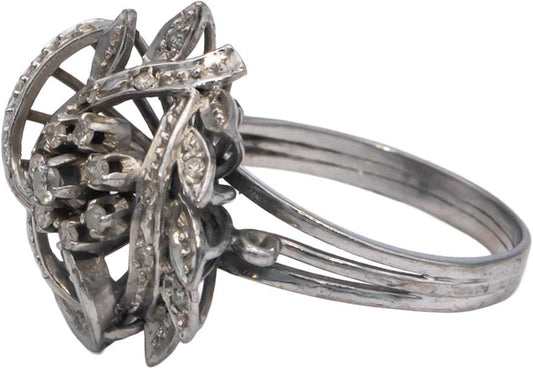 Vintage 14k White Gold 0.16CT Round Cut Diamond Floral Cocktail Ring Size 8