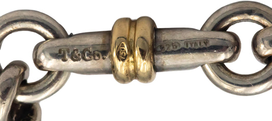 TIFFANY & CO. Sterling Silver 18k Gold Bridle Bar Link Necklace w/ Box and Pouch