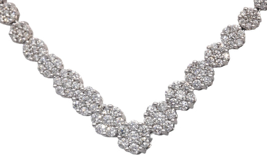 Diamond 14k White Gold Round Cut Cluster V-Shaped Formal Necklace 3.0CT