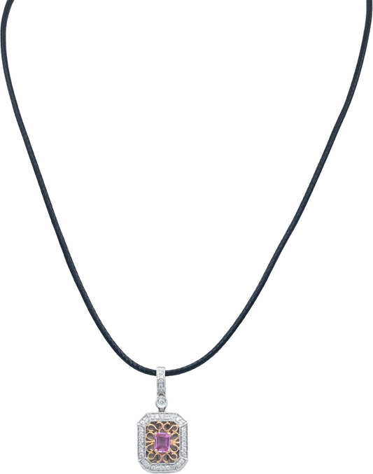 14k White and Rose Gold 0.60CT Diamond & Pink Sapphire Pendant Necklace