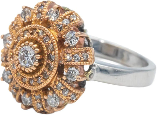 14k White and Rose Gold 1.0CT Round Cut Diamond Cocktail Ring Size 7