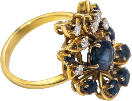 18k Yellow Gold 2.02CT Diamond and Sapphire Cluster Cocktail Ring Size 6.5