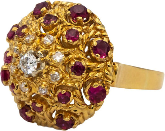 18k Yellow Gold VS Diamond and Ruby Dome Ring 0.90CTW Size 5.25