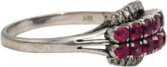 Vintage Antique 18k White Gold Ruby & Diamond Cocktail Ring 1.15CT Size 9.25