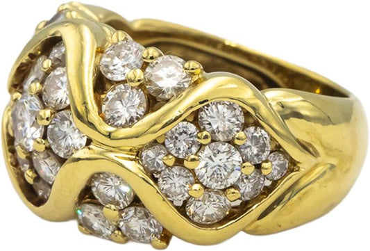 18k Yellow Gold VS Round Diamond Cluster Cocktail Ring 3.10CT Size 7