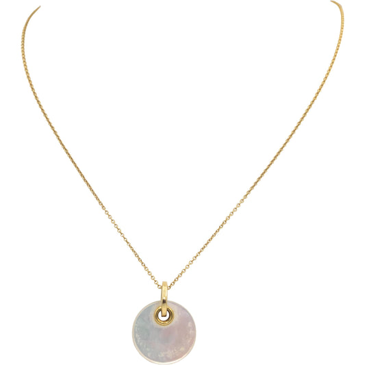 TIFFANY & CO. 18k Yellow Gold Mother of Pearl Disc Pendant Necklace Chain