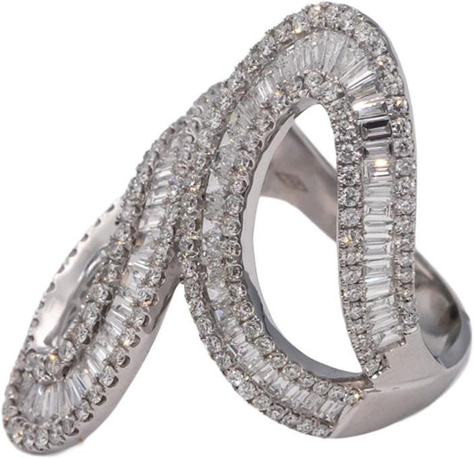 18k White Gold VS Round & Baguette Cut Diamond Swirl Bypass Ring 3.0CT Size 9.5