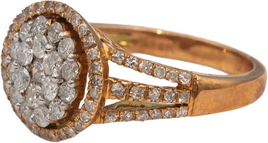 14k Rose Gold Round Diamond Cluster Halo Cocktail Ring 1.0CTW Size 7