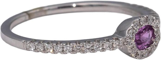 18k White Gold Oval Pink Sapphire Round Diamond Band Ring 0.35CT Size 6.75