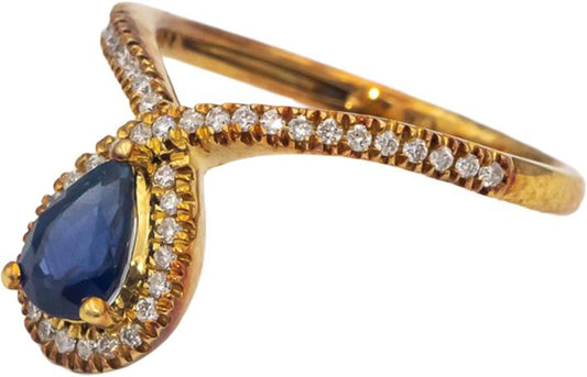 18k Yellow Gold Pear Sapphire Round Diamond Halo Ring 1.25CT Size 7