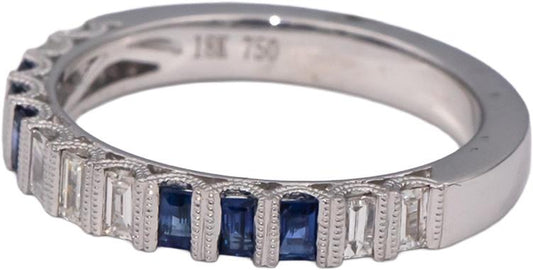 18k White Gold Emerald Cut VS Diamond & Sapphire Band Ring 0.57CT Size 6.5