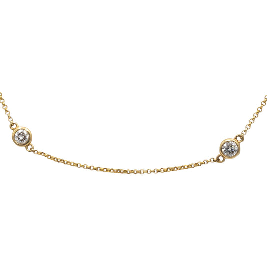 14k Yellow Gold 1.30CT Round Cut Bezel Set Diamond By The Yard Necklace Chain