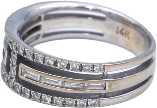 14k White Gold 0.45CT VS Round & Baguette Cut Diamond Band Ring Size 6.5