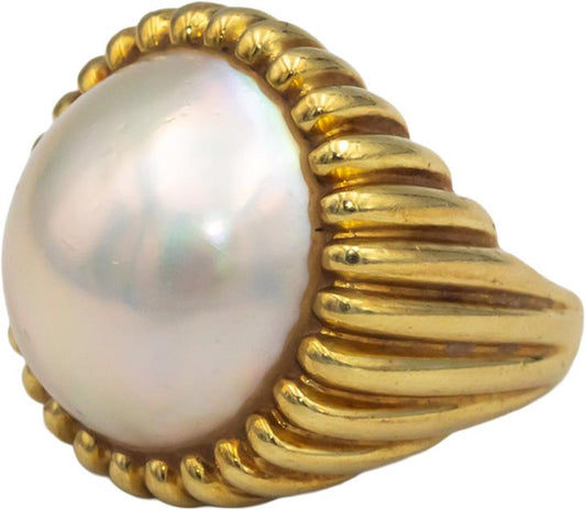 TIFFANY & CO. Vintage 18k Yellow Gold 19mm Mabe Pearl Ring Size 6.5