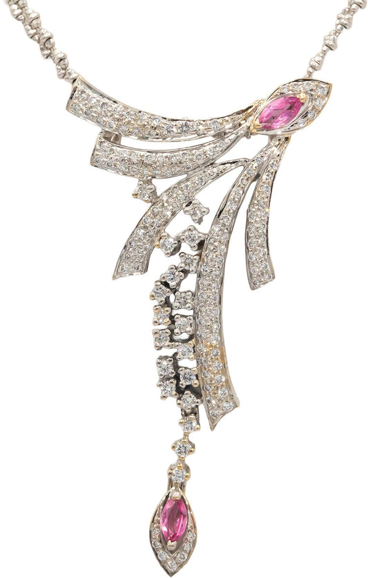 Diamond Pink Sapphire 14K White Gold Earrings and Pendant Necklace Set 2.25CT
