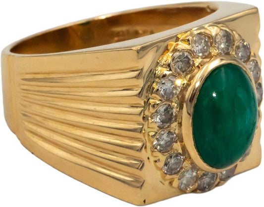 18k Yellow Gold Round Diamond and Cabochon Emerald Men's Ring 3.0CT Size 11