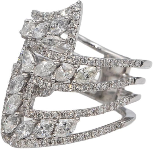18k White Gold Marquise Pear Round Diamond Cocktail Ring 3.0CT Size 7