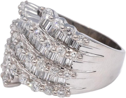 18k White Gold VS Baguette & Round Diamond Cocktail Ring 2.0CTW Size 7