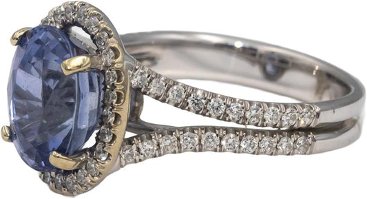 18k White Gold Oval Sapphire & Round Diamond Halo Cocktail Ring 4.90CT Size 6.5