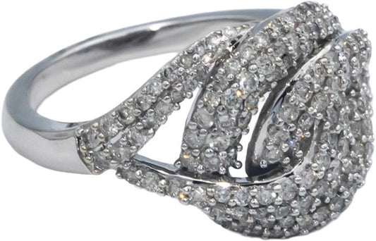 10k White Gold Round Diamond Cluster Knot Swirl Ring 1.0CT Size 7.25