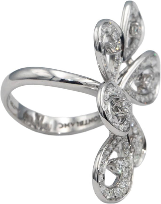 MONTBLANC 18k White Gold Diamond Flower Motif Cocktail Ring .70CT Size 6 Euro 52