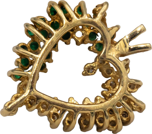 14k Yellow Gold Round Diamond and Emerald Cluster Heart Pendant 1.0CT