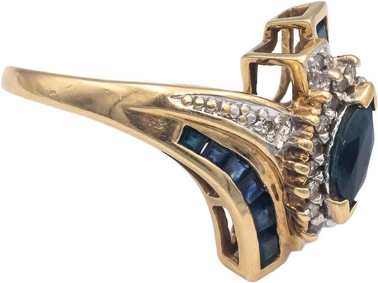 10k Yellow Gold Jewelry Diamond and Sapphire Cocktail Ring 1.35CT Size 8
