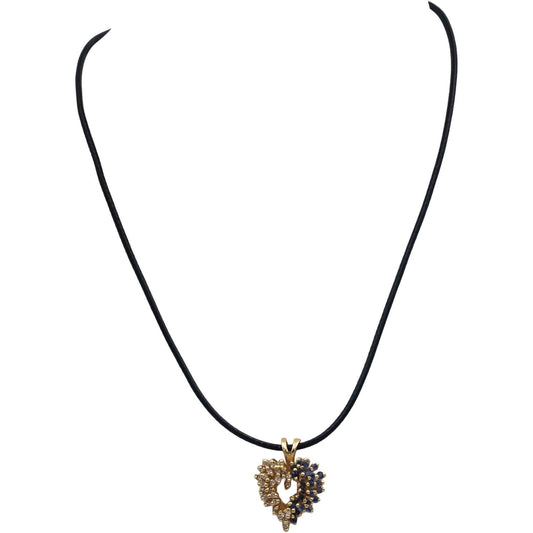 14k Yellow Gold Diamond and Sapphire Heart Cluster Pendant Necklace 0.63CT