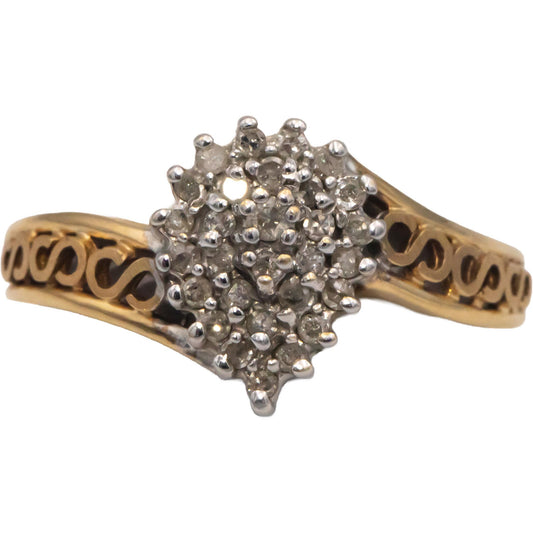 14k White and Yellow Gold Round Diamond Cluster Cocktail Ring 0.20CT Size 8