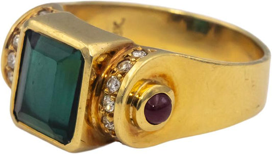 18k Yellow Gold VS Diamond Tourmaline Ruby Cocktail Ring 3.35CT Size 8.25