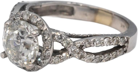 14k White Gold Round Diamond Engagement Ring 1.91CT w/ 1.49CT Center Size 6.75