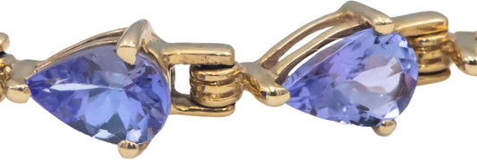 10k Yellow Gold Pear Cut Tanzanite Fancy Link Chain Bracelet 10.0CTW