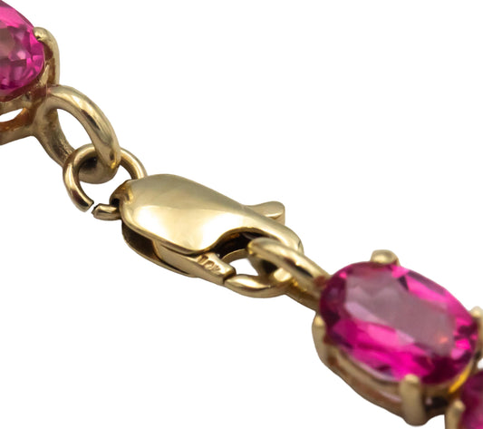 10k Yellow Gold Oval Cut Pink Topaz Fancy Link Bracelet 11.0CT