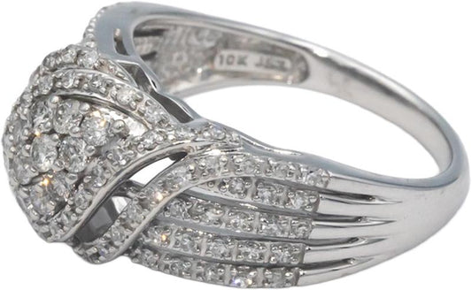 14k White Gold Round Cut Diamond Swirl Band Ring 1.13CT Size 7