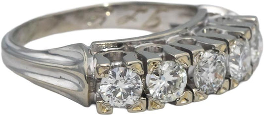 Vintage Antique 18k White Gold Round Diamond Five-Stone Band Ring 0.75CT Size 5