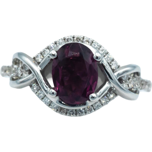 14k White Gold 1.51CT Round Diamond and Oval Tourmaline Ring Size 6