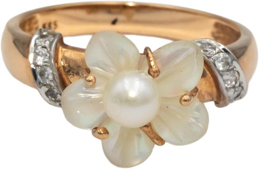 14k Gold 0.25CT VS Diamond Pearl & Mother of Pearl Ring and Earring Set
