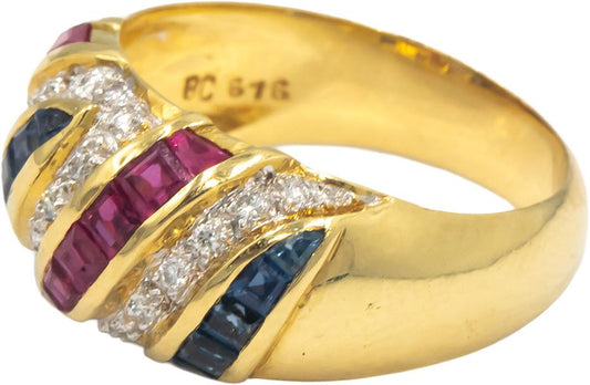 KALATI 18k Yellow Gold 1.10CT Diamond Ruby Sapphire Band Ring Size 7