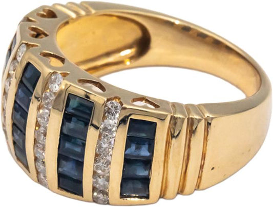 14k Yellow Gold 1.50CT Diamond and Blue Sapphire Band Ring Size 7.25