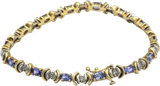 14k Yellow & White Gold 1.65CT Diamond and Tanzanite Fancy Tennis Bracelet
