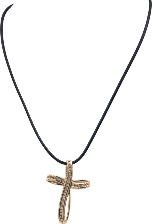 10k Yellow Gold 0.50CT Diamond Cross Crucifix Pendant On Cord Necklace