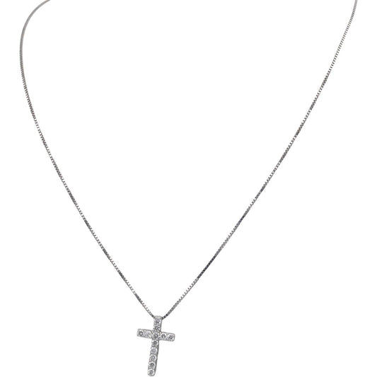 14k White Gold 0.50CT Round Cut Diamond Cross Crucifix Pendant Necklace